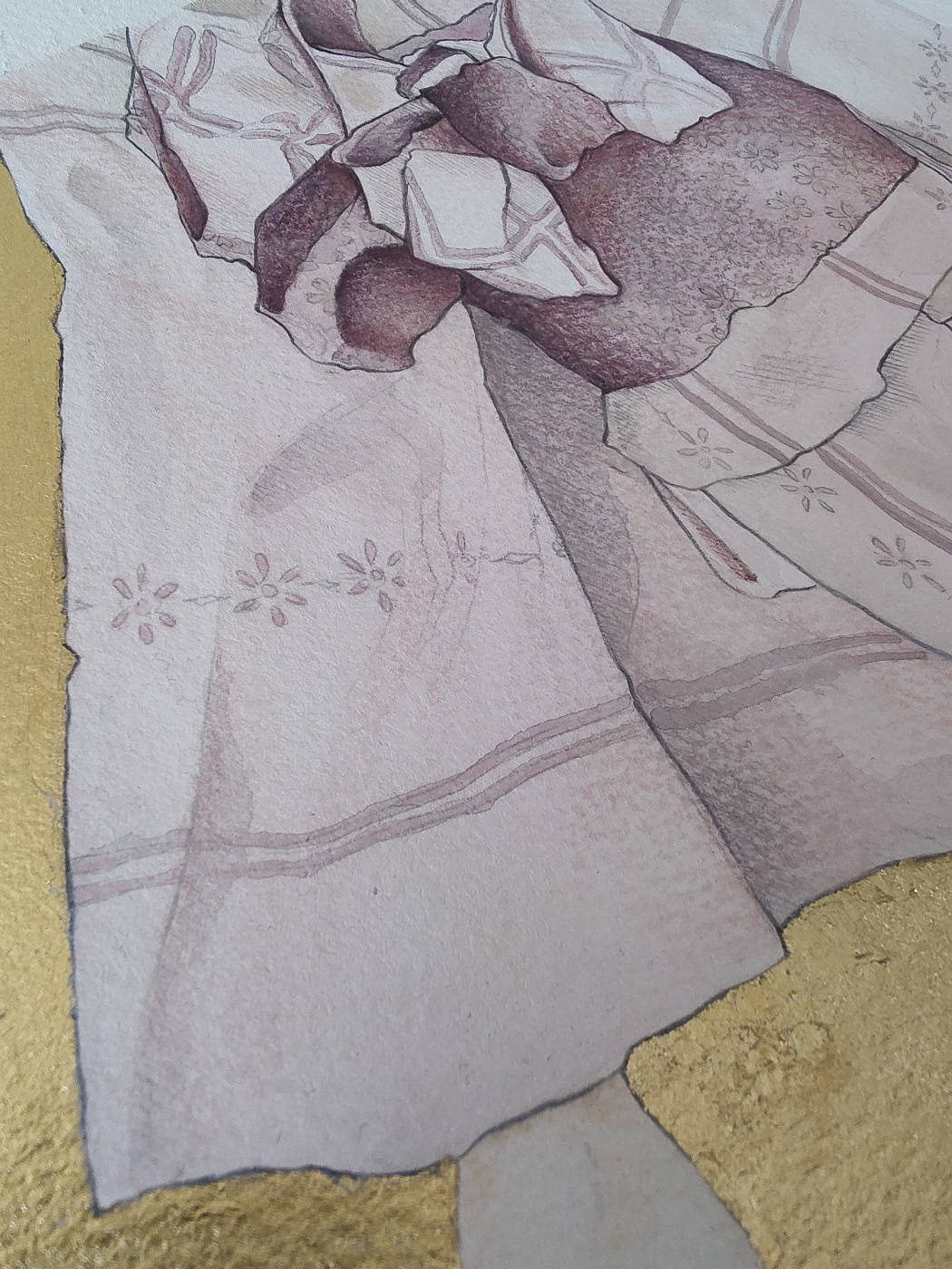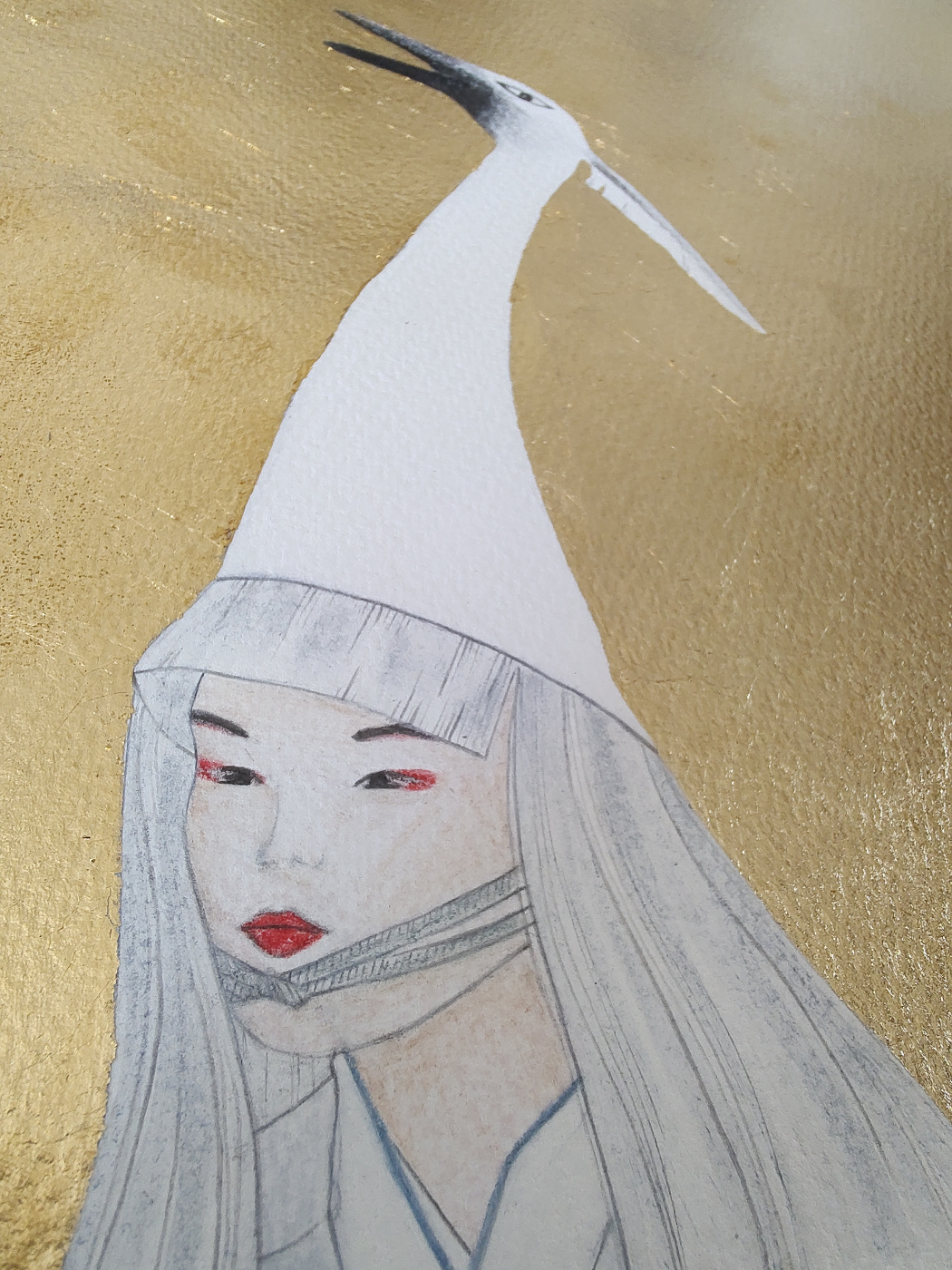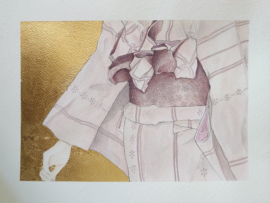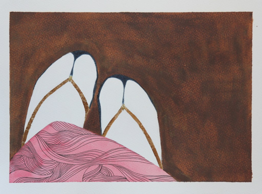 SETA watercolors, pastel pencils, graphite, ink pen and gold leaf on paper 23 x 31 cm private collection SETA acquerelli, pastelli, grafite, penna ad inchiostro liquido e foglia d’oro su carta 23x 31 cm collezione privata