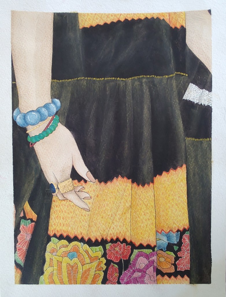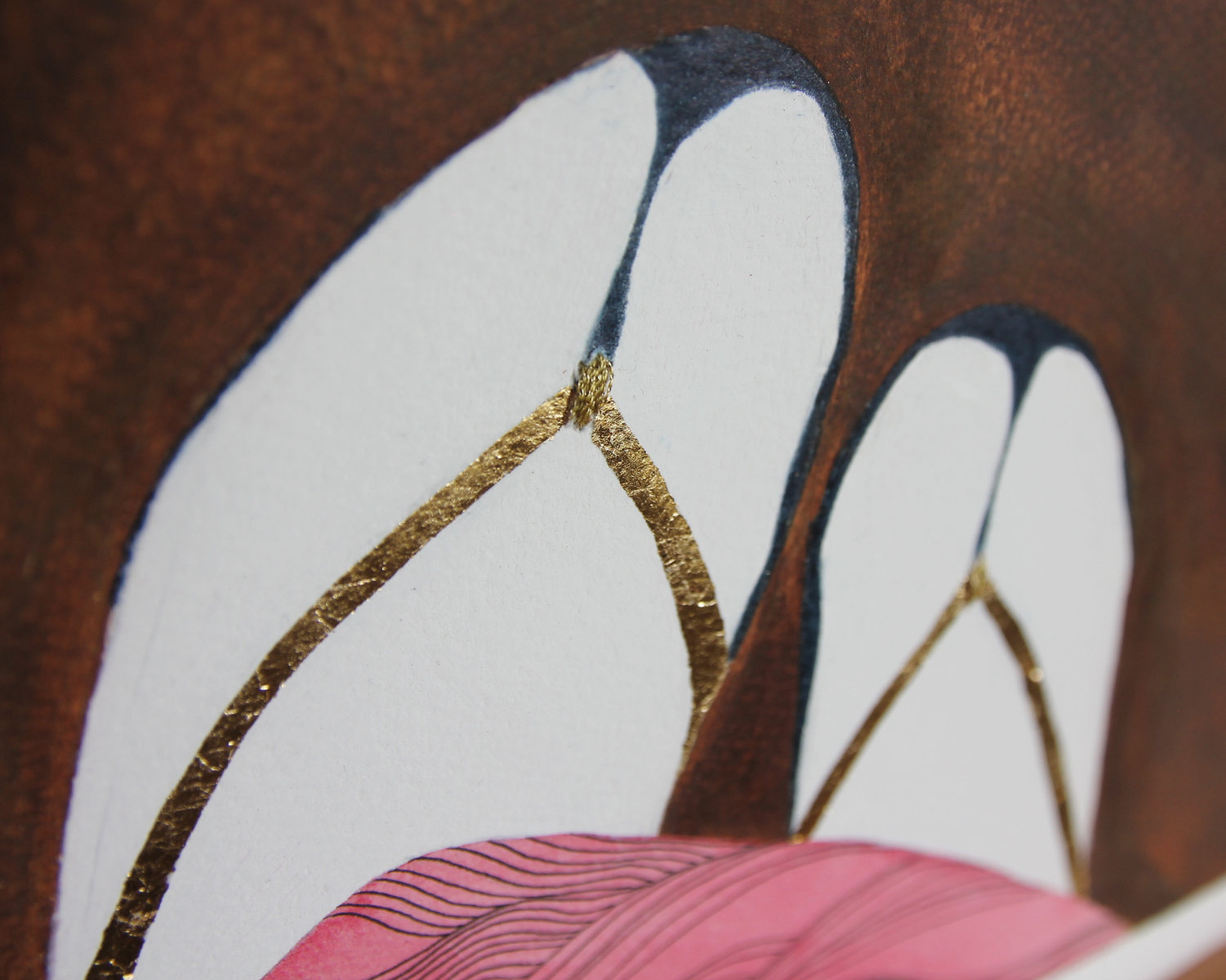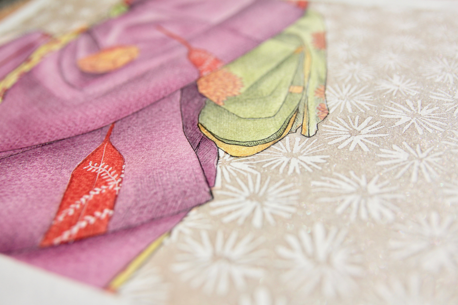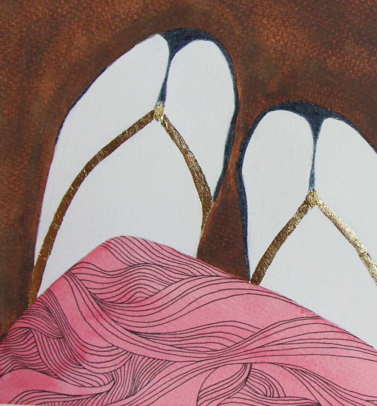 SETA watercolors, pastel pencils, graphite, ink pen and gold leaf on paper 23 x 31 cm private collection SETA acquerelli, pastelli, grafite, penna ad inchiostro liquido e foglia d’oro su carta 23x 31 cm collezione privata