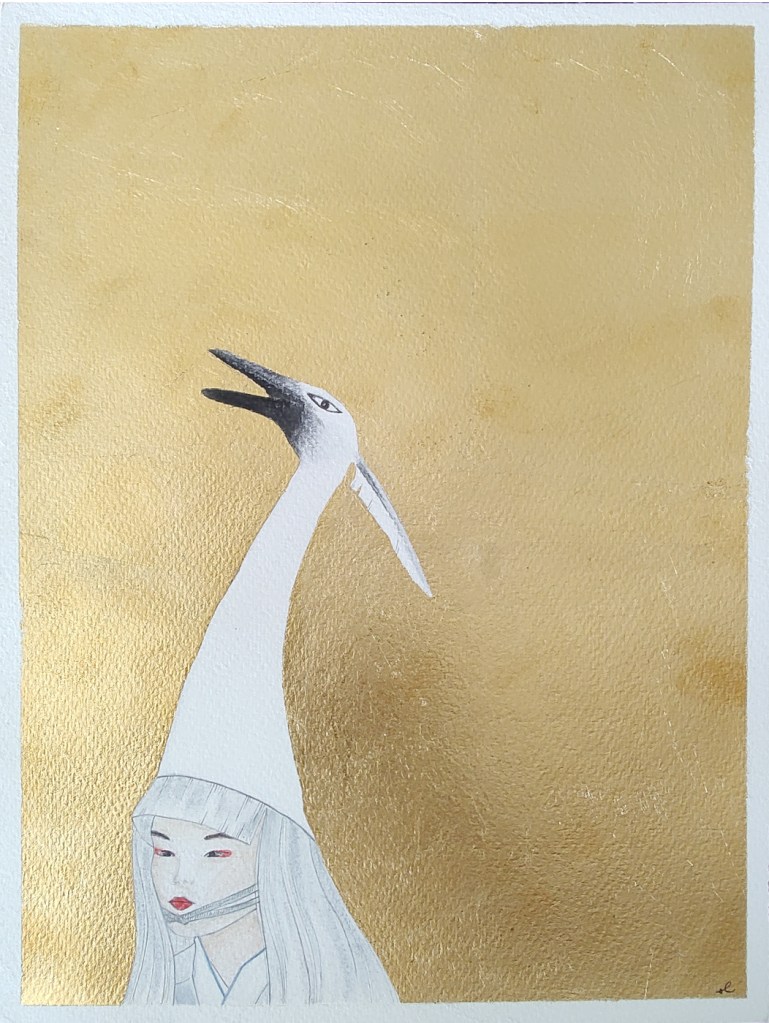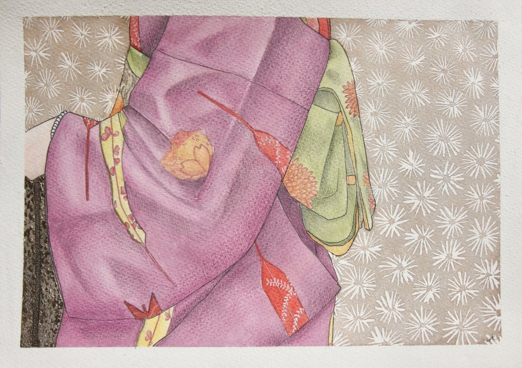 SAKURA watercolors, pastel pencils, graphite and gold leaf on paper 23 x 31 cm SAKURA acquerelli, pastelli, grafite e foglia d’oro su carta 23x 31 cm